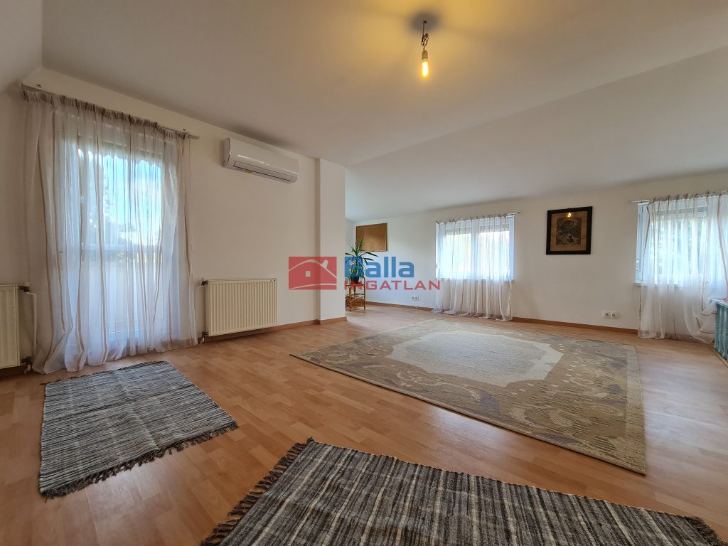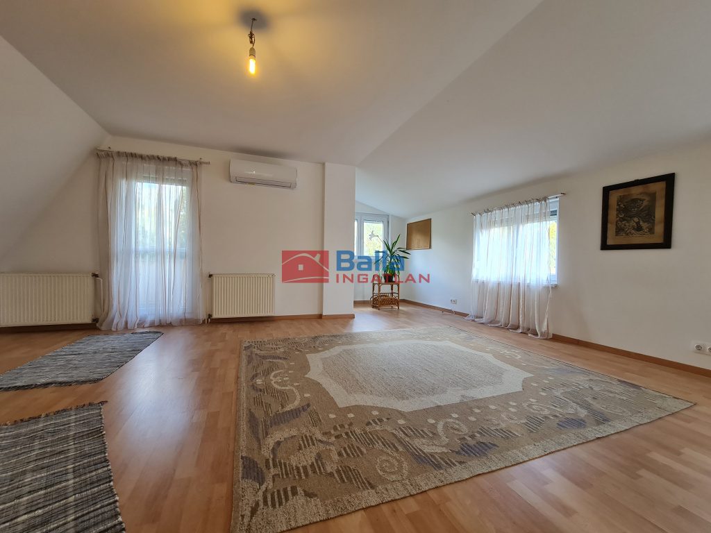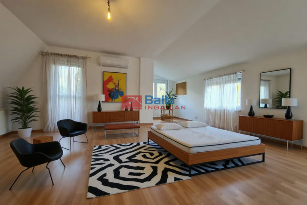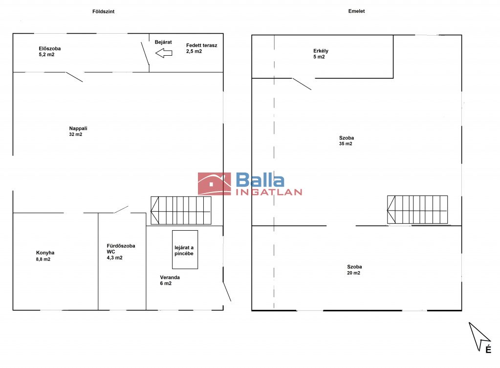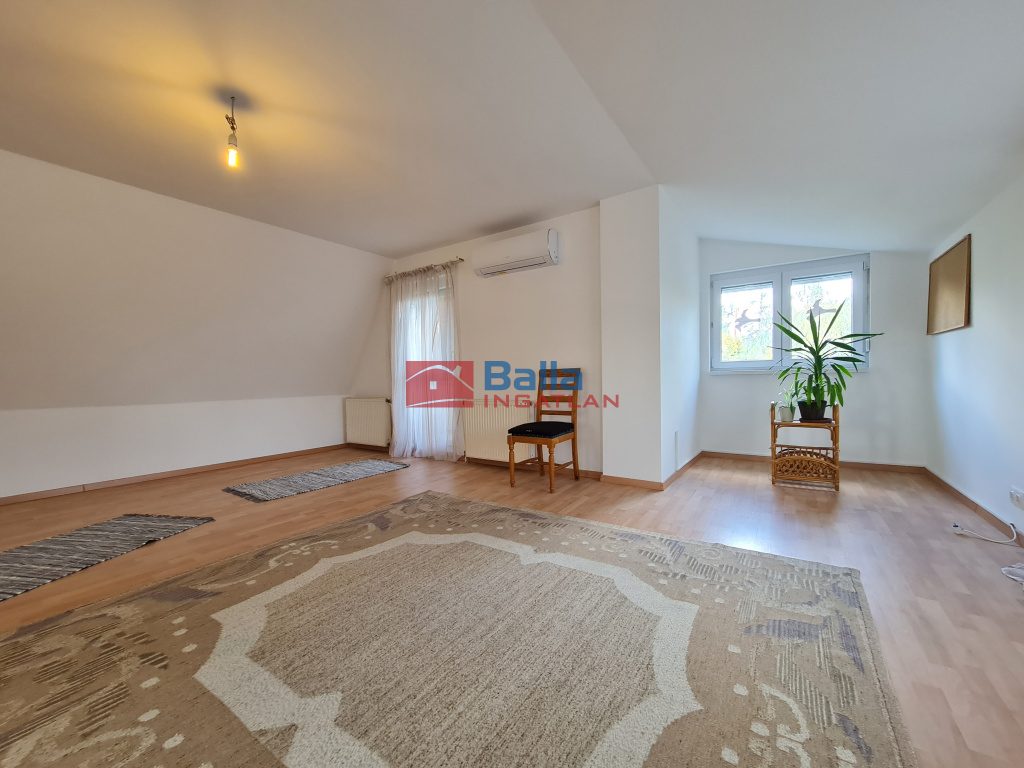 • Az emeletre a nappali sarkából induló lépcső vezet. Itt egy tágas, 30 m²-es szoba és egy 20 m²-es hálószoba található. A nagyobbik szoba a ház legvilágosabb pontja, egész nap besüt a nap, és innen nyílik az 5 m²-es erkély is, ahonnan körpanoráma tárul elénk. A szoba mérete és geometriája lehetővé teszi két kisebb hálószoba kialakítását is.