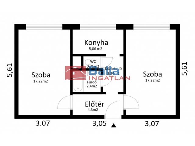 51 m² terület 2 szoba