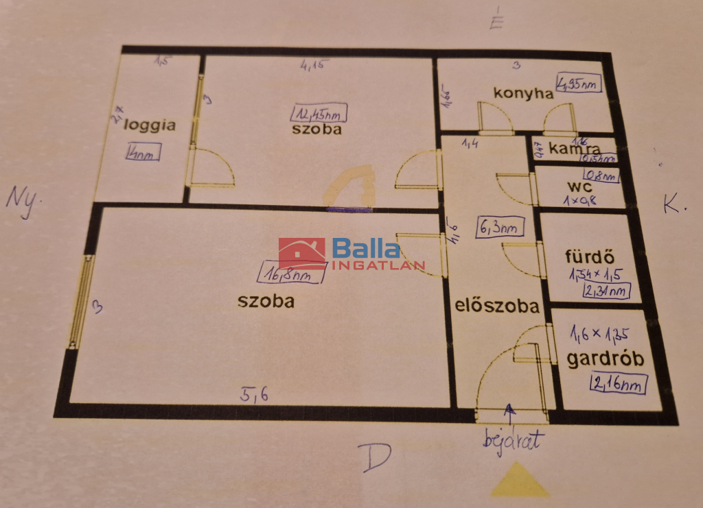 Egyéb tulajdonságok: tehermentes, azonnal költözhető, lift (1 db), külön wc, kamra, loggia (4 m²), pince, utcai parkolás