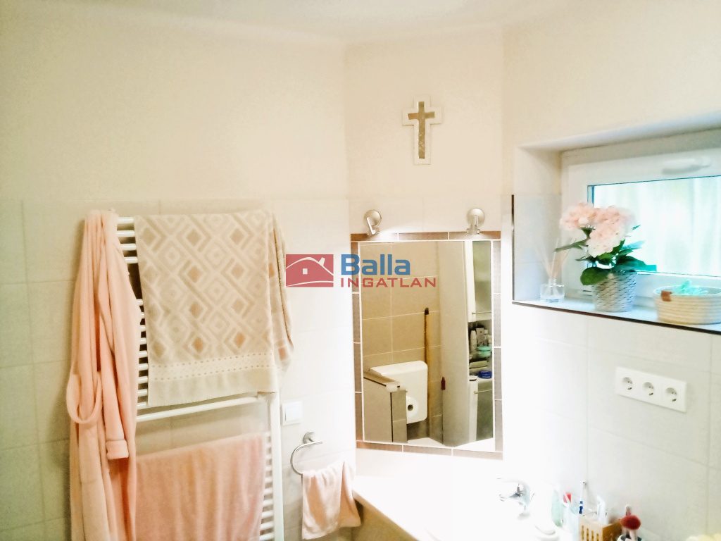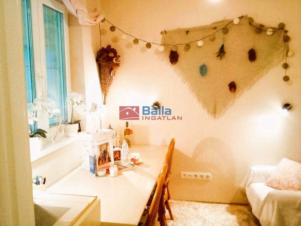Az ingatlan egy teljeskörű felújításon esett át, ezalatt értem az összes villany- és vízvezeték, műanyag nyílászárók cseréjét, új radiátorokat kapott és a vizes helyiségekben járólappal, csempével burkoltak. A szobákban, az előszobában és a konyhában laminált padló került lehelyezésre. Beépített konyhabútor a vételárat képezi a gépekkel együtt. Fürdő és a wc egyben található, új szanitereket kapott, teljesen fel lett újítva. Hátul saját kertje van, kerti csappal: kb. 25-30 nm terület, csodálatos panorámával a Budai várra, Bazilikára és környékére, reggeli napfelkeltével.