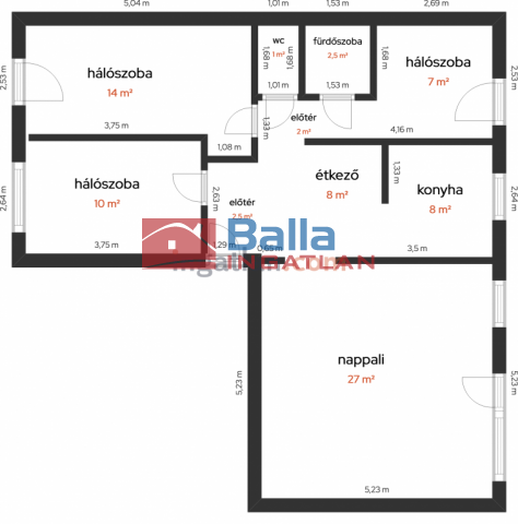 Egyéb tulajdonságok: tehermentes, azonnal költözhető, külön étkező, külön wc, erkély (3 m²), pince, utcai parkolás