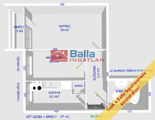 Egyéb tulajdonságok: tehermentes, kamra, erkély (3 m²), utcai parkolás