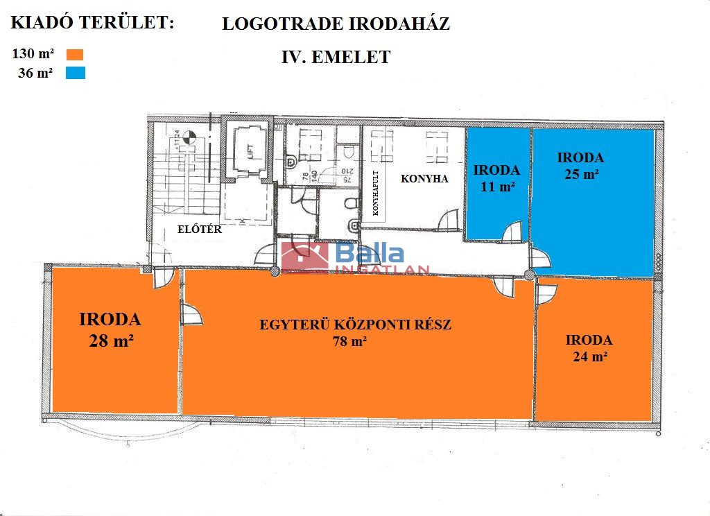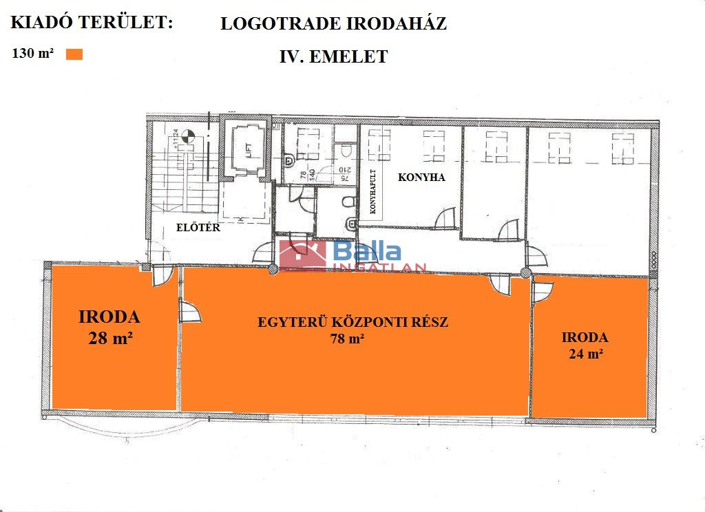 130 m2 – 78 m2 egy légtér + 2 iroda