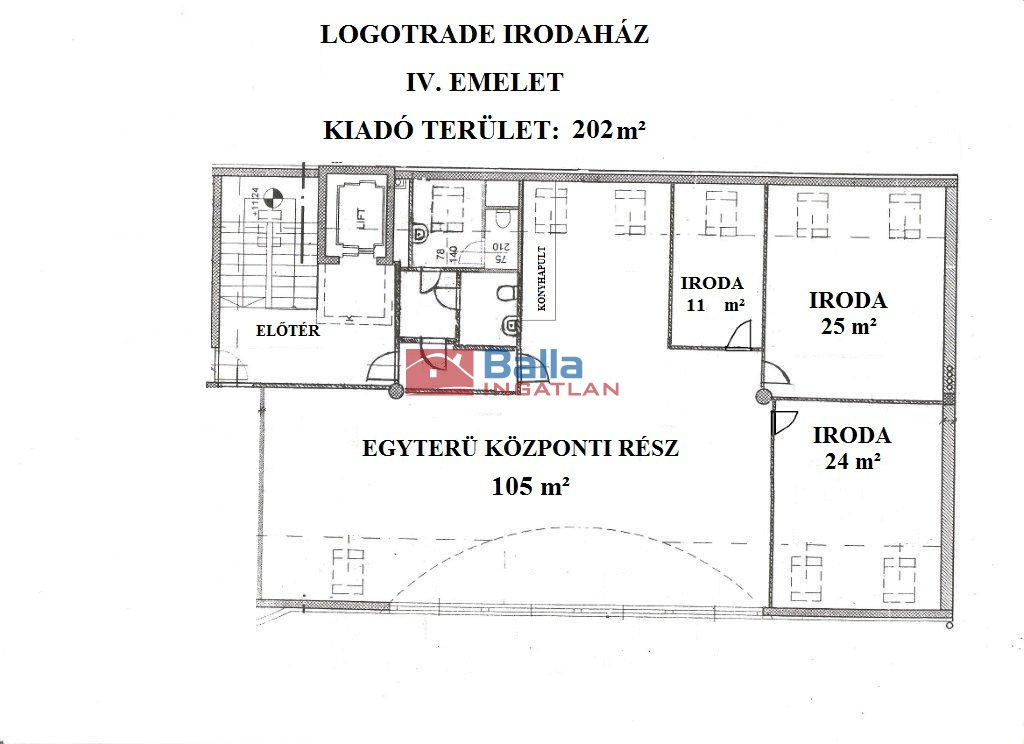 202 m2 terület – egy iroda kivételével a teljes emelet