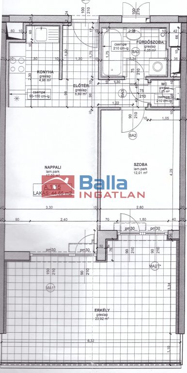 • 45 m² lakótér + 24 m² erkély