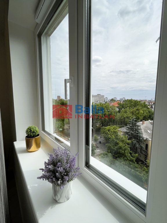 A beruházáson belül az egyik legjobb magasemeleti lakás, különleges sarki elhelyezkedéssel (Klapka u./Kassák Lajos u.): körbe süti a nap, szép kilátással (Budai hegyek, Citadella, Városligeti hőlégballon). Nappali fekvése: délkeleti-délnyugati, hálószoba fekvése délkeleti.