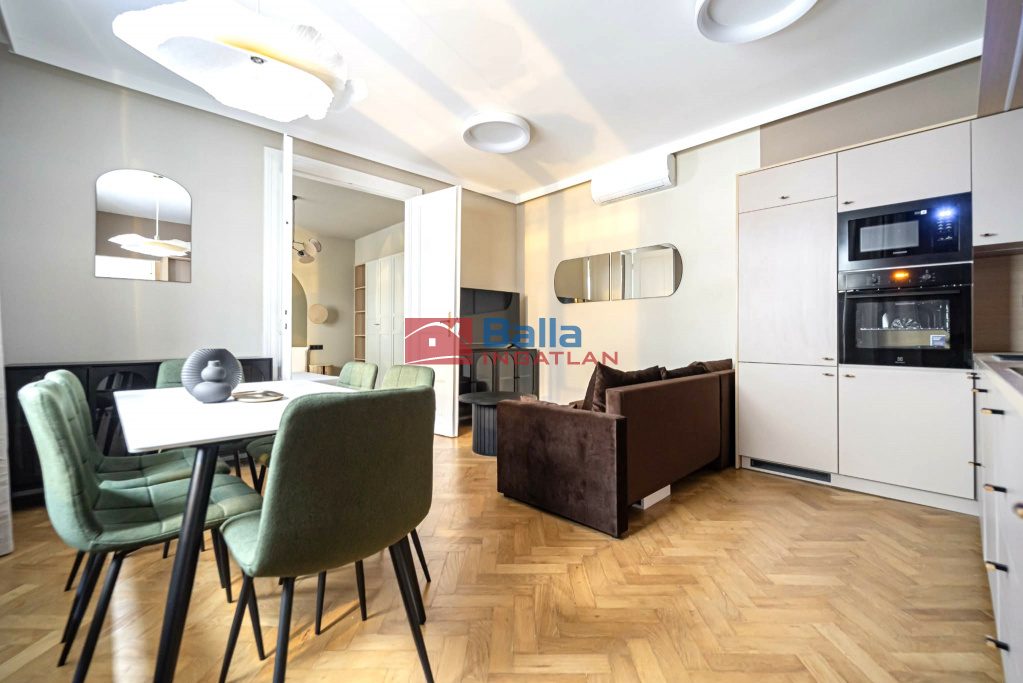 Kiadó a XIII. kerület Katona József utcában, kiváló közlekedési feltételek mellett, mégis csendes helyen, belső építész által tervezett és kialakított 50 m2-es, 2 szobás, gyönyörűen felújított, magas minőségű bútorokkal berendezett, gépesített, klimatizált, 2. emeleti, exclusive, világos, minden igényt kielégítő, kisállat barát lakás.