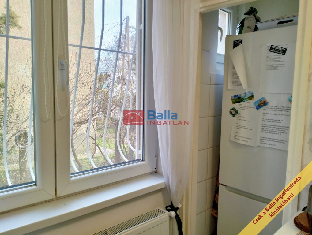Eladásra kínálunk egy a 70-es években épült 6 lakásos társasház magasföldszintjén található, 52 négyzetméteres, 2 külön nyíló szobás, ablakos konyhás, erkélyes, délnyugati fekvésű, körbe napozott, így nagyon világos, felújított lakást. A szobák ablakából és az 5 négyzetméteres erkélyről a házzal szemben lévő parkra, illetve a ház mellett lévő sportpályára nyílik kilátás. A lakáshoz tartozik egy 2 négyzetméteres tároló a pincében, valamint egy az épület alatt elhelyezkedő 16,6 négyzetméteres garázs, melyek további 10 millió Forintért kötelezően megvásárlandók.