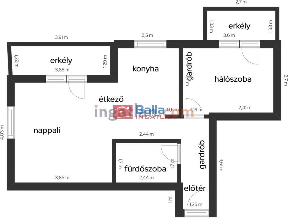 - 2 külön erkélyes,