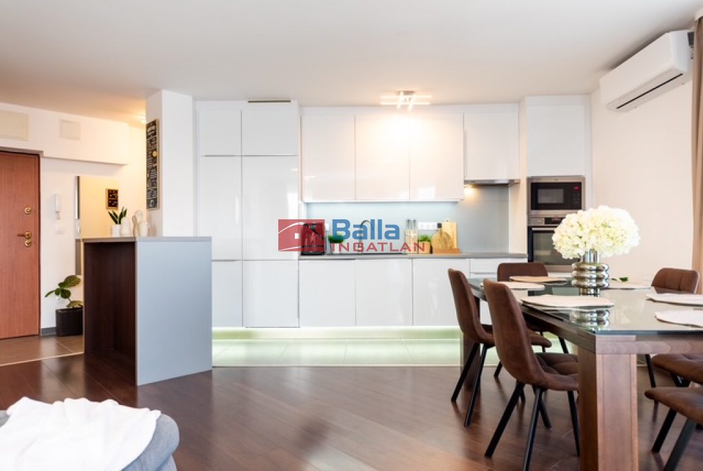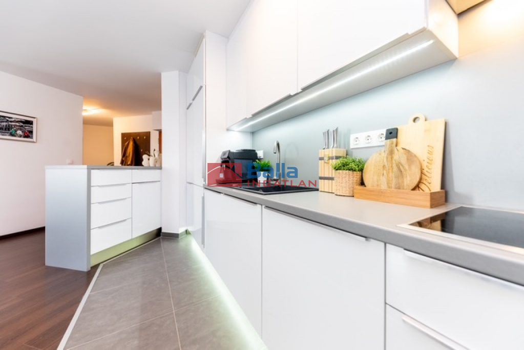 Extrák: minőségi burkolatok és beépített szekrények. Teremgarázs