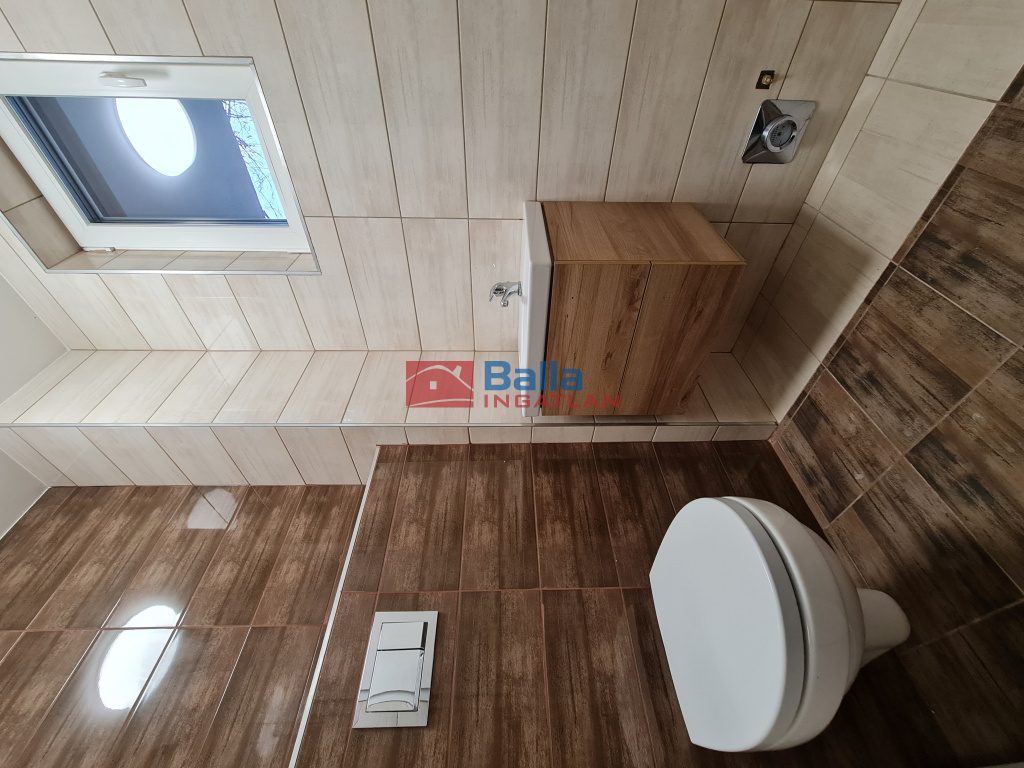 Az emeletre három, külön bejáratú hálószobát és egy WC-vel is ellátott, kádas fürdőszobát találunk. Az emelet NEM tetőtéri kialakítású, hanem teljes értékű! E szint felett még egy tekintélyes méretű, tárolásra alkalmas padlást találunk; a tetőt modern betoncseréppel van fedve, a födém kőzetgyapot szigeteléssel rendelkezik.