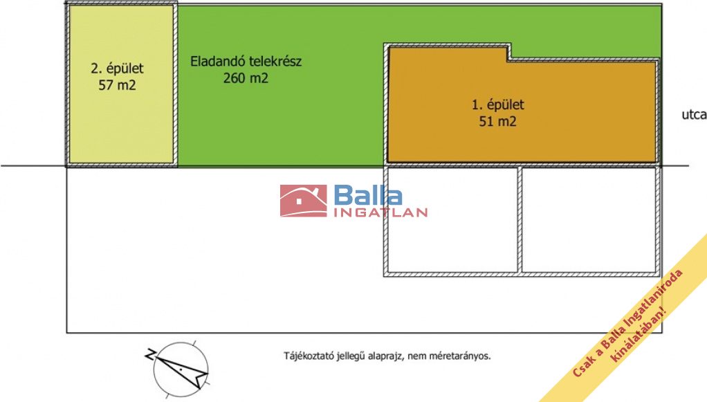 A telken további 2 épület található, ugyanakkor az eladni kívánt ingatlan rész teljesen különálló, külön bejárattal, közművekkel és HASZNÁLATI MEGOSZTÁSSAL rendelkezik. A telek rajzon a zölddel jelölt telek és két db sárga házrész együtt eladó.