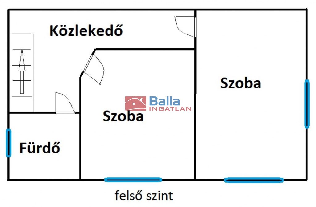 ➡ Felső szint: 2 hálószoba, világos, ablakos fürdőszoba