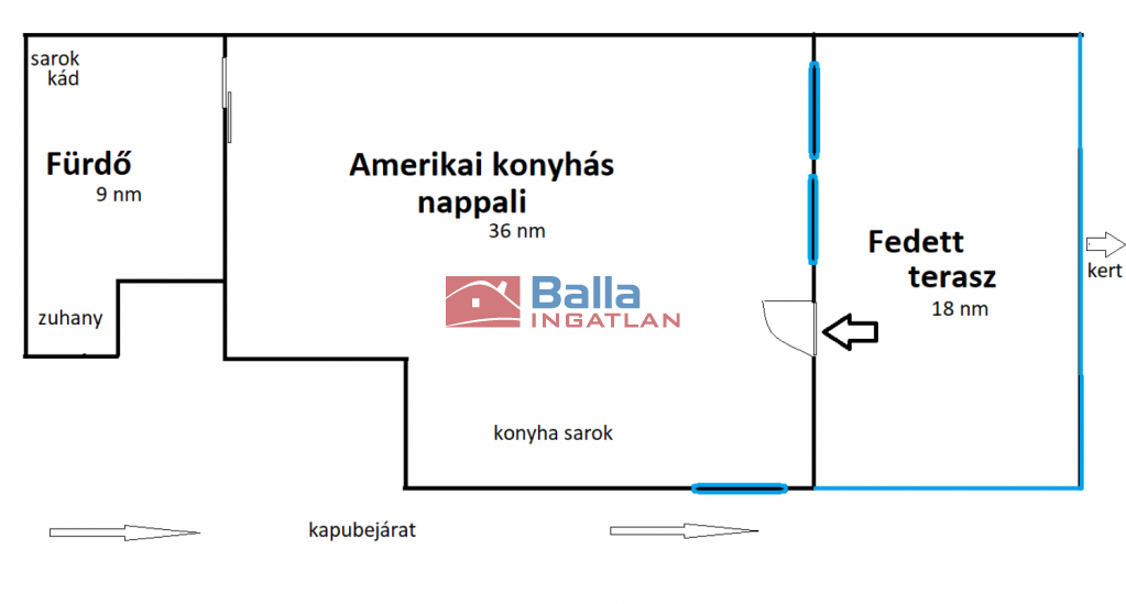 Fedett terasz, kertkapcsolattal a szabadidő kellemes eltöltéséhez