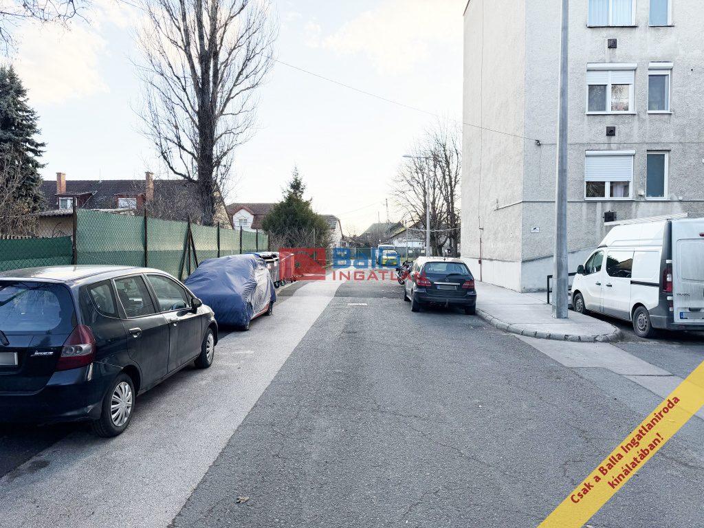 A környezet kis forgalmú, nyugodt utca, parkosított.
