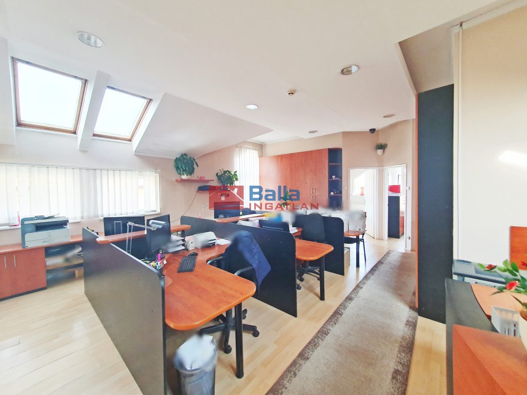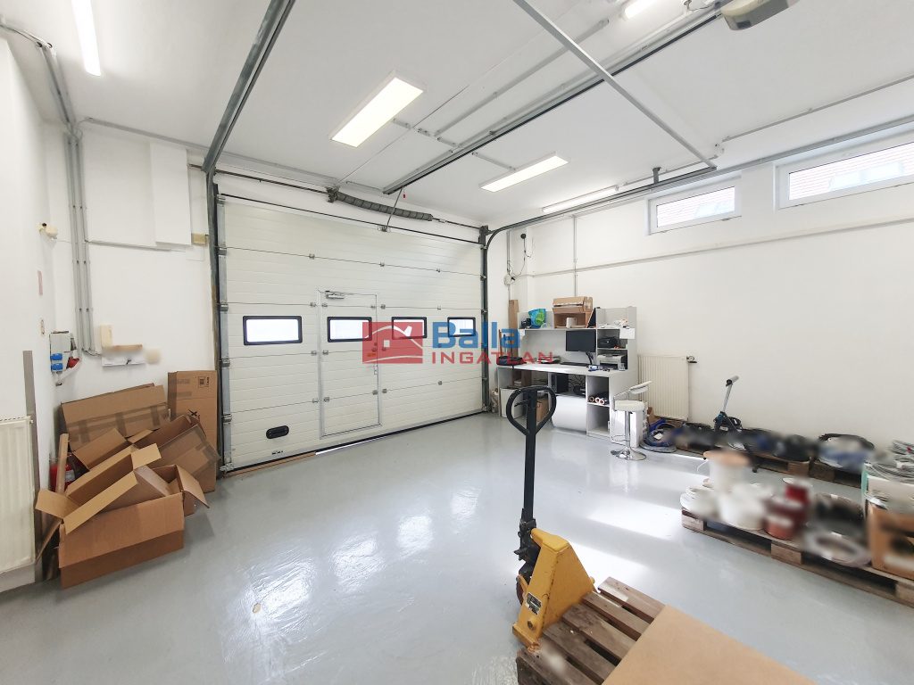 Két szinten 417 nm-es hasznos alapterülettel rendelkezik, melyhez 3 tehergépkocsi beállására is alkalmas, tolókapuval zárt, nagy teherbírásra kialakított udvar és további külső fa szerkezetű raktárak tartoznak. Felső szinten egy légterű és vezetői irodák, tárgyaló, földszinten ipari tevékenység helyiségei, raktár, bemutató terem. Összesen 12 KIVÁLÓ ÁLLAPOTÚ helyiség, 3 wc és fürdő, öltöző, konyha, szerver szoba, raktár és pihenő helyiség.