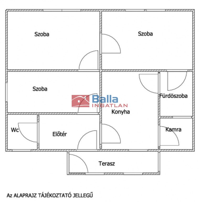 Az ingatlan körbejárható alaprajzú, a helyiségek egymásból is megközelíthetők, ami rendkívül praktikussá teszi a mindennapi használatot.
