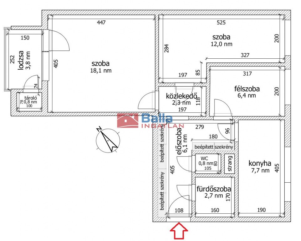 Egyéb tulajdonságok: tehermentes, azonnal költözhető, külön wc, kamra, loggia (4 m²), utcai parkolás