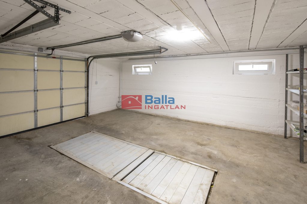 A ház szuterén szintje további 76,6 m², itt található a gépkocsitároló, praktikus szerelőaknával, valamint további tárolóhelynek, konditeremnek, szaunának, moziszobának vagy akár műhelynek alkalmas ablakos, fűthető tér.