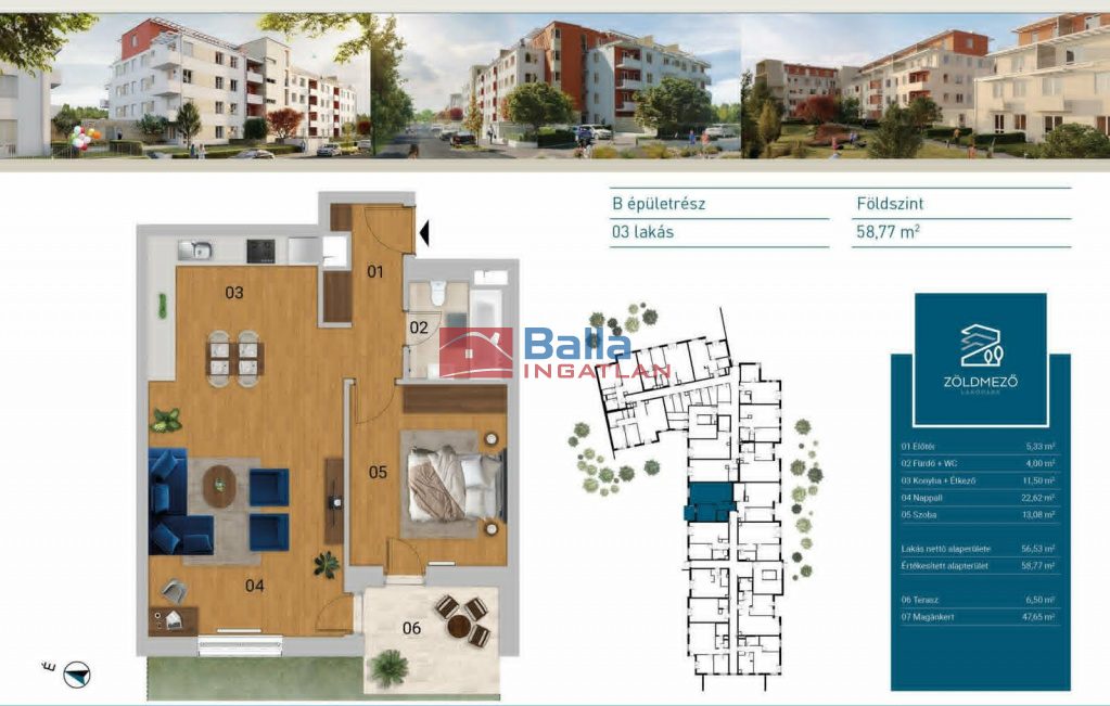XVI. Kerület, Zöldmező Lakópark, Újszerű, Nyitra utca, 55 m²-es, társasházi lakás