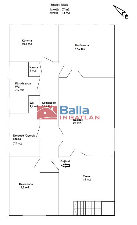 Egyéb tulajdonságok: tehermentes, külön wc, kamra, terasz (14 m²), zárt autóbeálló