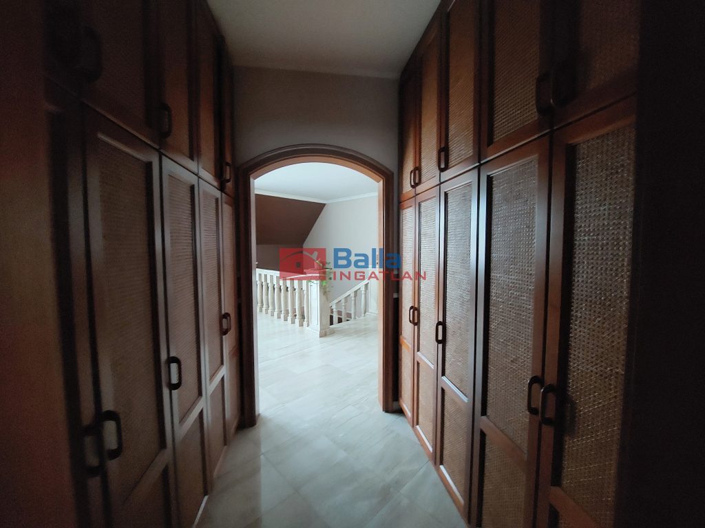 Összességében 1 amerikai konyhás nappali, 4 hálószoba, 2 fürdő, 3 külön WC, wellness részleg, mosókonyha, 3 állásos garázs, valamint közlekedők, gardróbok és tárolók találhatók az épületben.