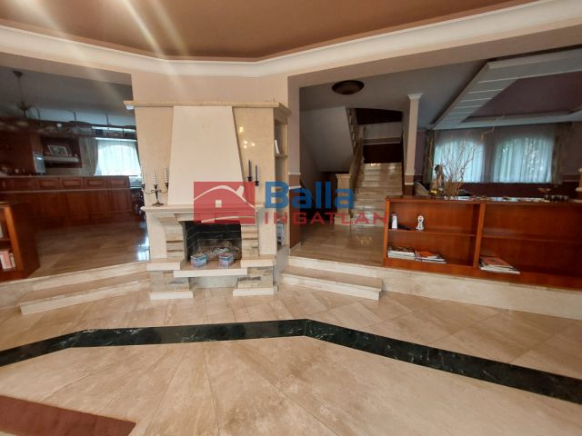 • klasszikus, kandallós szalon, mai megközelítéssel egy félköríves nappali közvetlen kertkapcsolattal