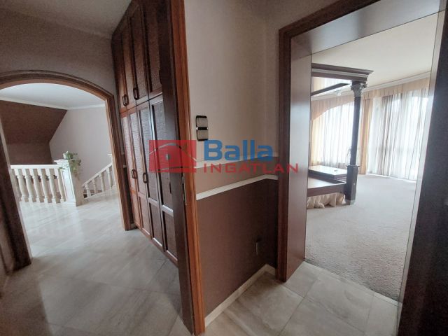 Összességében 1 amerikai konyhás nappali, 4 hálószoba, 2 fürdő, 3 külön WC, wellness részleg, mosókonyha, 3 állásos garázs, valamint közlekedők, gardróbok és tárolók találhatók az épületben.