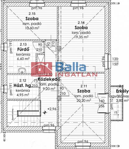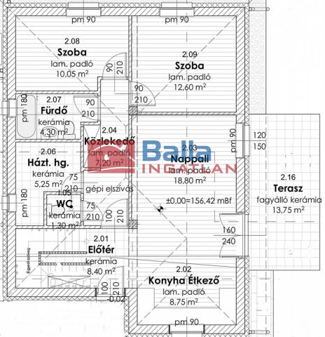 Egyéb tulajdonságok: külön wc, erkély (3 m²), terasz (14 m²), zárt autóbeálló, utcai parkolás