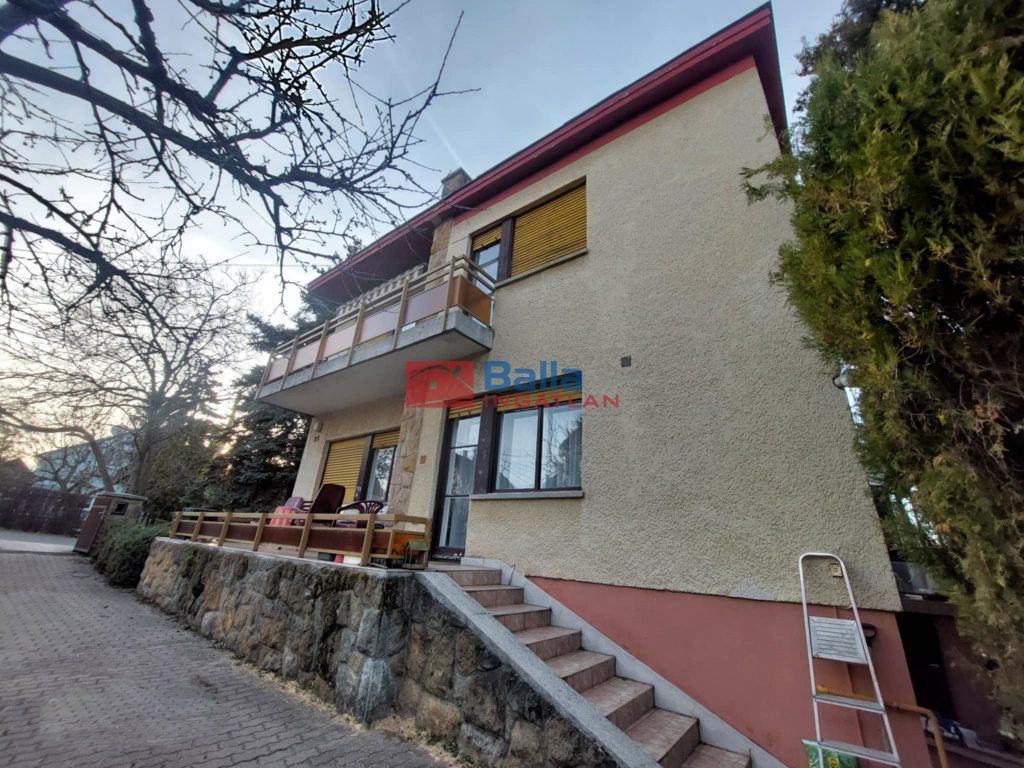 A fő-ház egy 1976-ban épült ikerház. A kor legjobb megoldásaival készült, teljesen alápincézve, ahová egykoron garázst építettek - ma már inkább műhelynek ajánlható. A kettő lakószínt szépen karbantartott, 4 szoba, konyha, étkező, 2 fürdő kialakítású. A felső szint fürdője néhány éve teljesen modern formát, és padlófűtést is kapott. A lapostetőt újra-szigetelték - noha probléma addig sem volt vele.
