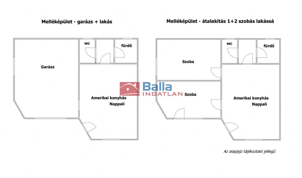 1993-ban 60nm-es melléképület épült a házhoz, teljesen különállón, garázs és mosókonyha elgondolással. Néhány éve teljes felújítást kapott, egy modern garzon, és egy tágas garázs a jelenlegi kialakítása. Már ekkor is az összenyitásban gondolkodtak, így könnyedén 1+2 félszobás lakássá alakítható - valamint akár vállalkozásra is adhat lehetőséget. Iroda, avagy valamely szolgáltatás is jól működhet benne. Ezt segítve több autó udvari parkolása is megoldható.