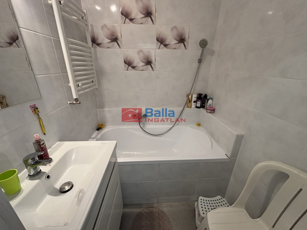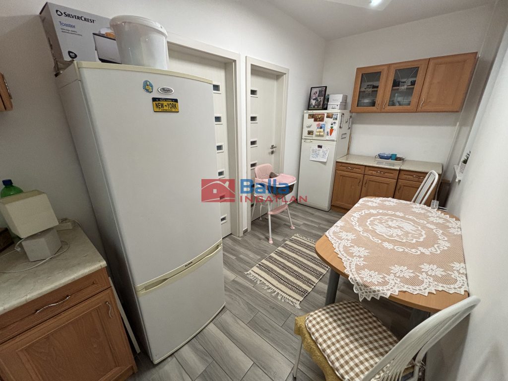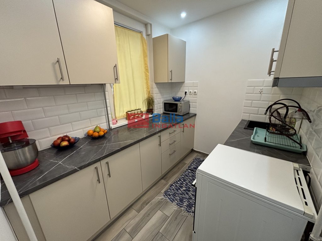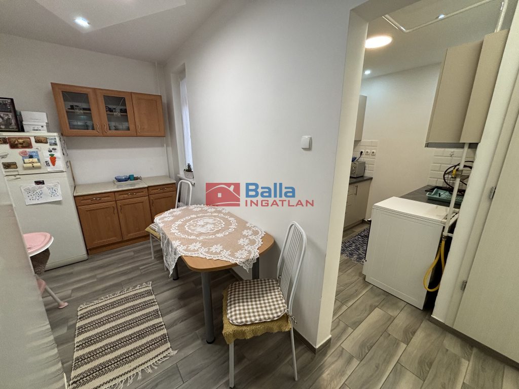 Ízléses fürdőszoba új burkolatokkal, gépesített konyhabútor, hideg burkolatok és a szalagparketta cseréje is megtörtént.