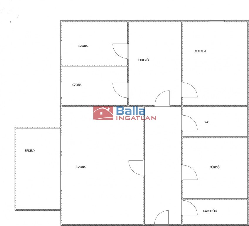 Egyéb tulajdonságok: külön étkező, külön wc, gardróbszoba, erkély (4 m²), utcai parkolás