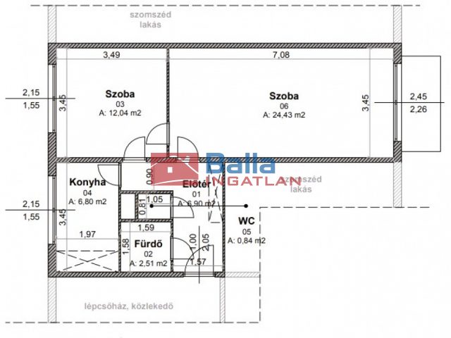 Egyéb tulajdonságok: tehermentes, külön wc, erkély (3 m²)