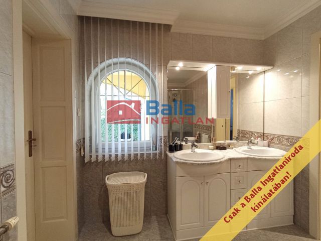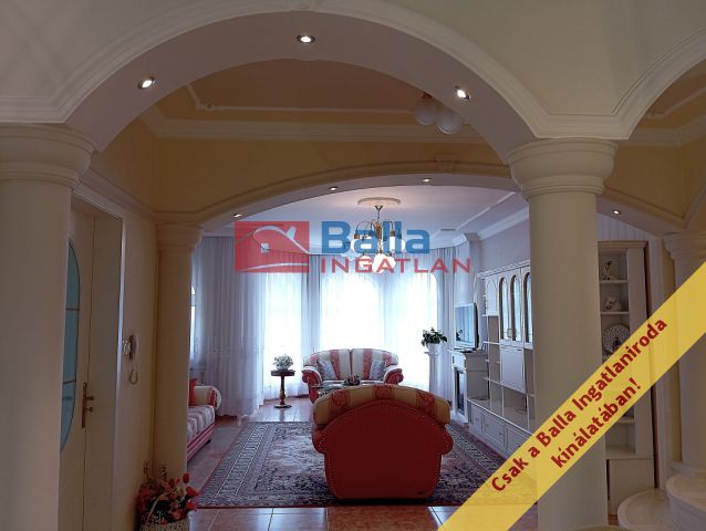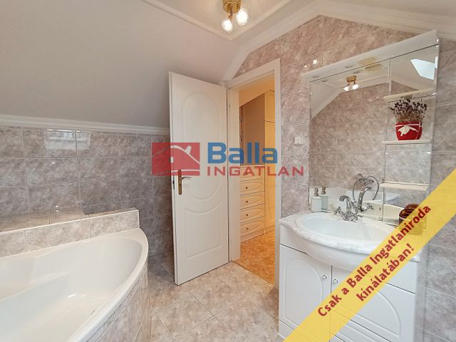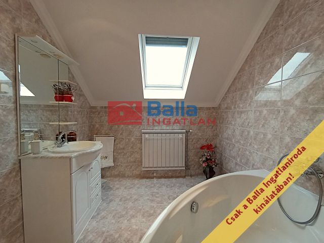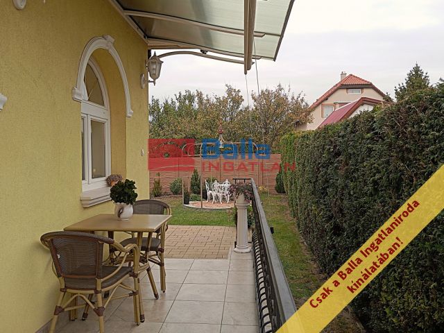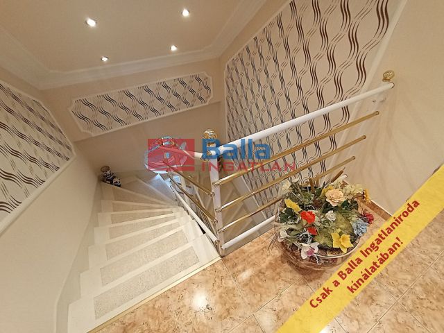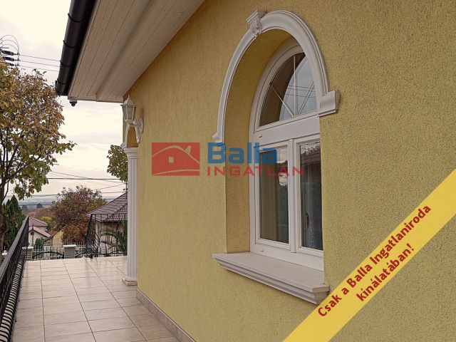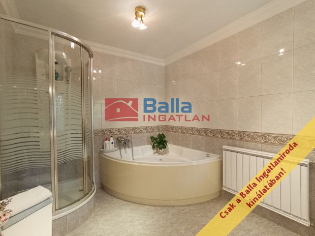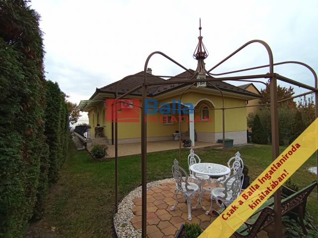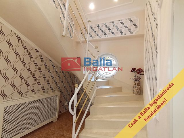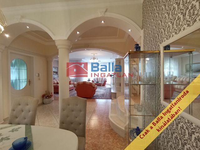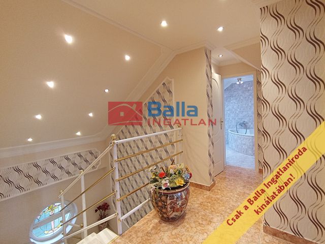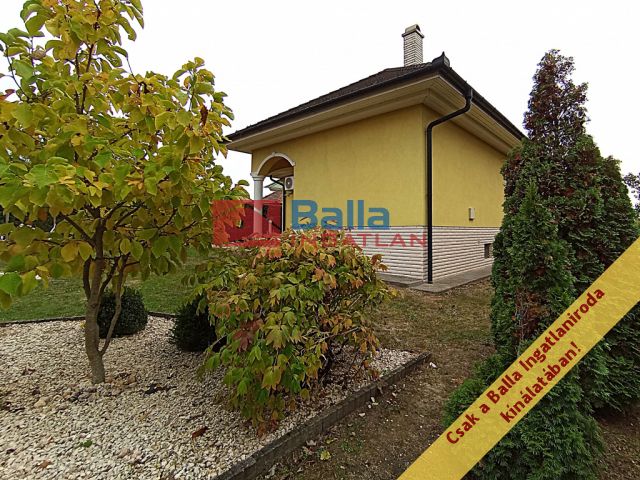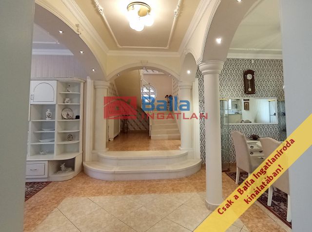 A két lakószintes, duplagarázsos ház 2001-ben épült – igényes építtetői (jelenlegi tulajdonosai) saját célra a legmagasabb színvonalú munkához és a legjobb minőségű anyagok felhasználásához ragaszkodtak. A Ytong főfalak 40 cm-esek, a tetőt Bramac cserép borítja, a korlátok és kerítések kovácsoltvas elemekből készültek. A tökéletes hőérzet komfortját a padlófűtés, a hőleadók és a hűtő-fűtő klíma biztosítja.