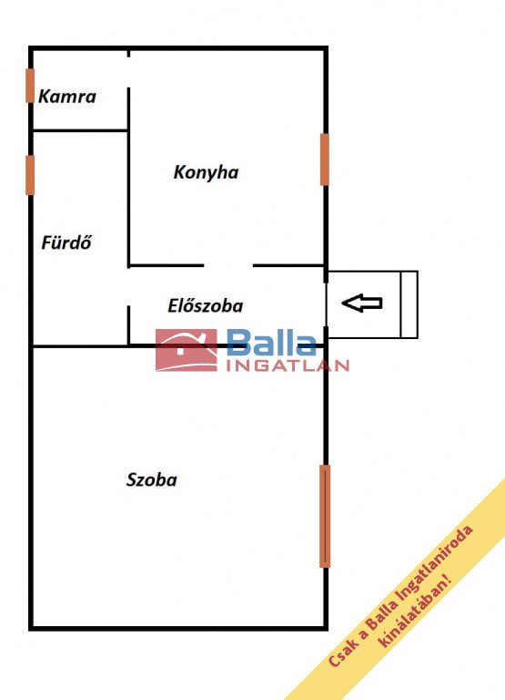A telken található egy 40 nm-es, betonfödémes, 1 szobás, összkomfortos, jó állapotú ház, amely bővíthető.