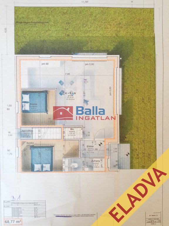 -B1 lakás 68.71m2+79m2 + Saját kert ( Nappali-konyha + 2 háló + fürdő + toalett + kert 79nm. - 83.99mFt )