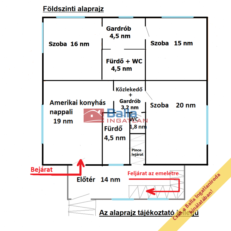 Az alsó szinten amerikai konyhás nappali, + 3 szoba, 2 gardrób, 2 fürdőszoba, és egy külön álló WC található. Az emeleti szinten nappali + 4 szoba, 1 fürdőszoba, (igény esetén konyha) és erkély lett kialakítva.