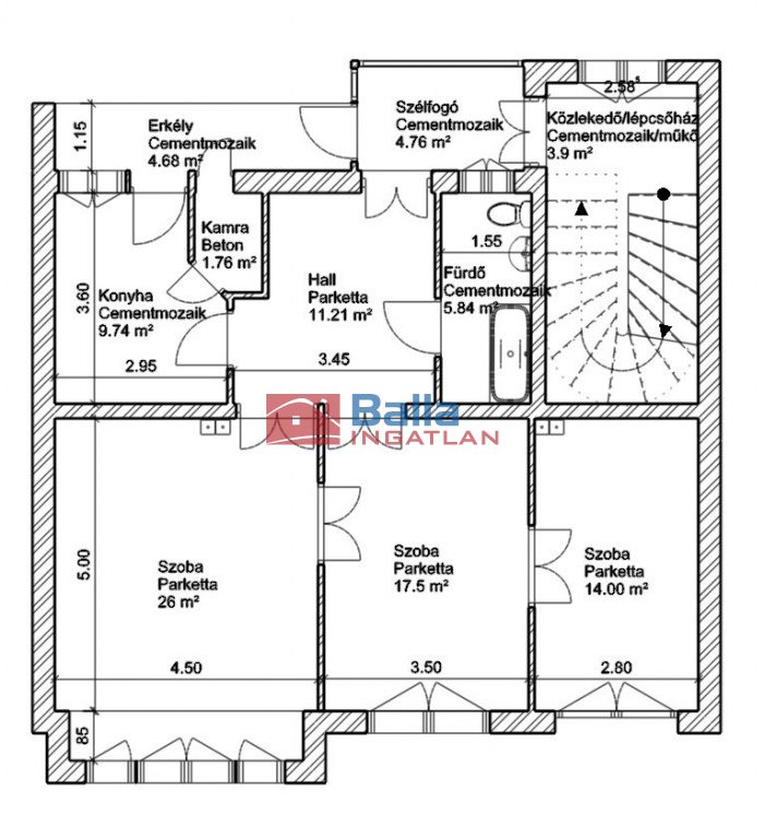Egyéb tulajdonságok: tehermentes, azonnal költözhető, lift, erkély (5 m²), utcai parkolás