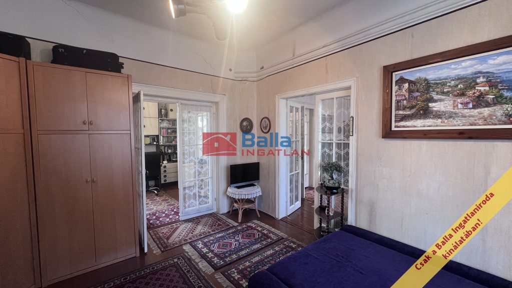Az ingatlan belső állapota átlagos, akár jelenlegi formájában is költözhető, de a mai igényeknek megfelelően korszerűsítést igényel. A nyílászárók és a beltéri ajtók klasszikus fa szerkezetűek, megőrizve az épület eredeti karakterét.