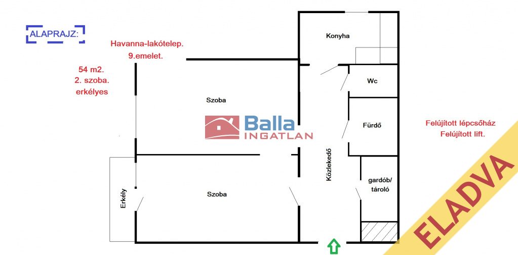 - felújított lift,