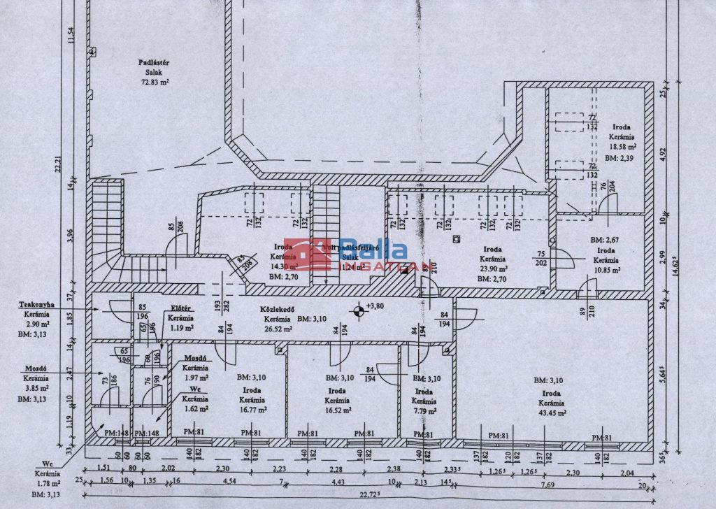 A 2 szintes iroda komplexumot, zárt, felújított lépcsőházon keresztül közelíthetjük meg. A földszinten 30 nm-es tágas recepció, az emeleten 6 iroda és hatalmas tárgyaló lett kialakítva 200 nm-en.