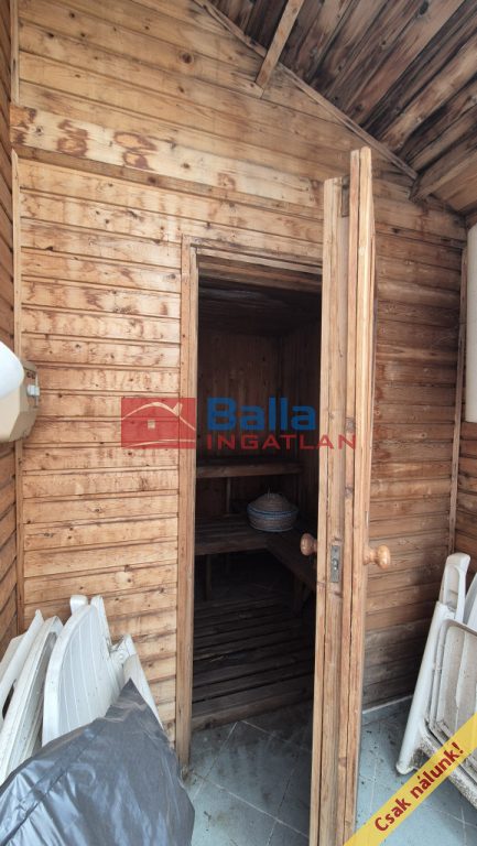 Egyéb: Kerti medence, hozzá tartozó gépészettel. Kertben különálló kis wellness faház szaunával, tusolóval.
