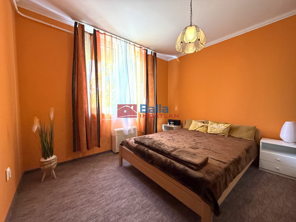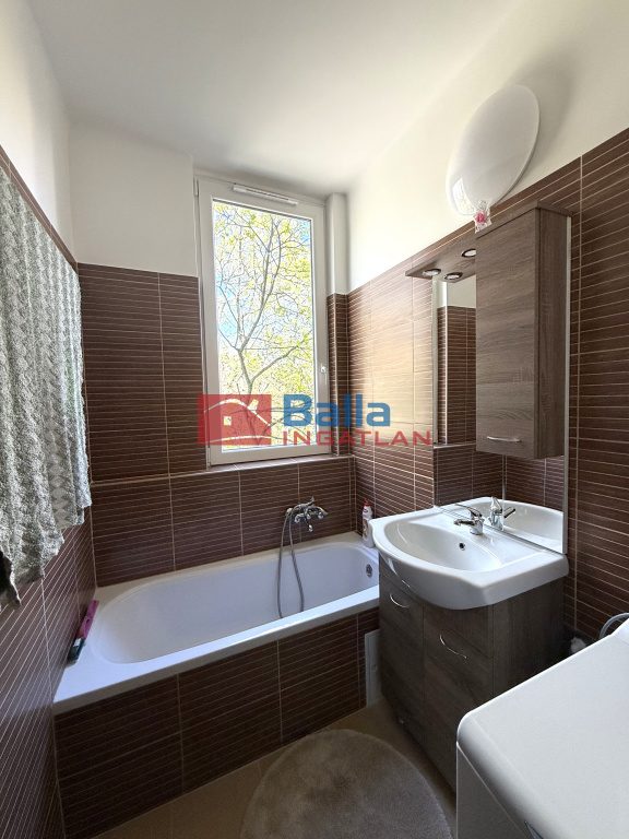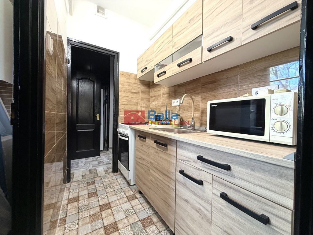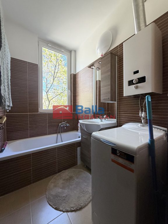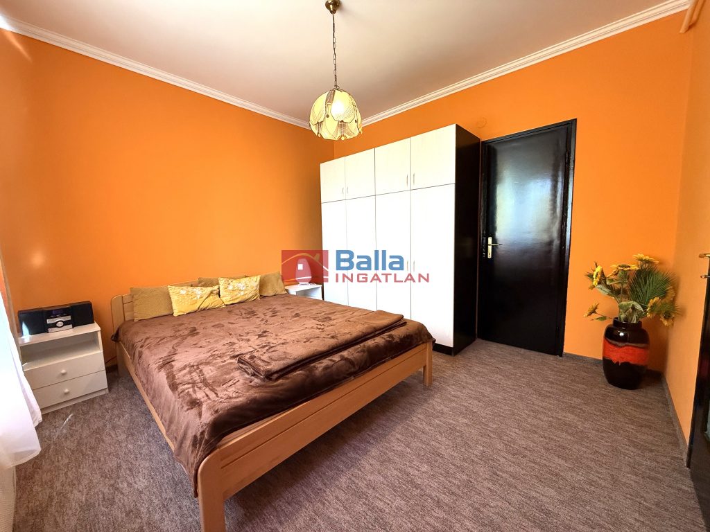 Kiadóvá vált egy 50 m2 alapterületű két szoba + 1/2 szobás, erkélyes társas házi lakás. A nappali 18 m2 alapterületű, nagy sarok ülő garnitúrával, üveg asztallal és székekkel bútorozva, innen nyílik az erkély. A hálószoba egybe és külön is nyíló, francia ággyal, ruhás szekrénnyel bútorozva. A konyha konyhabútorral, gáz tűzhellyel felszerelt. A fürdőszoba mosdóval, káddal felszerelt, a toalett külön helységben kapott helyet. Az otthon melegéről gáz konvektor gondoskodik, a meleg vízről gáz kazán, víz órával felszerelt, légkondicionált. A lakás teljes körű felújításon esett át, felújításra került a villamos hálózat, víz vezetékek, új burkolatot, szanitereket, bútorozást kapott. Az ablakok új két légkamrás műanyagra lettek cserélve, acél biztonsági ajtó került beszerelésre. A lakás gépesített : tv, hűtőszekrény, mikrohullámú sütő, mosógép, mini hifi szolgálja az itt lakó kényelmét.