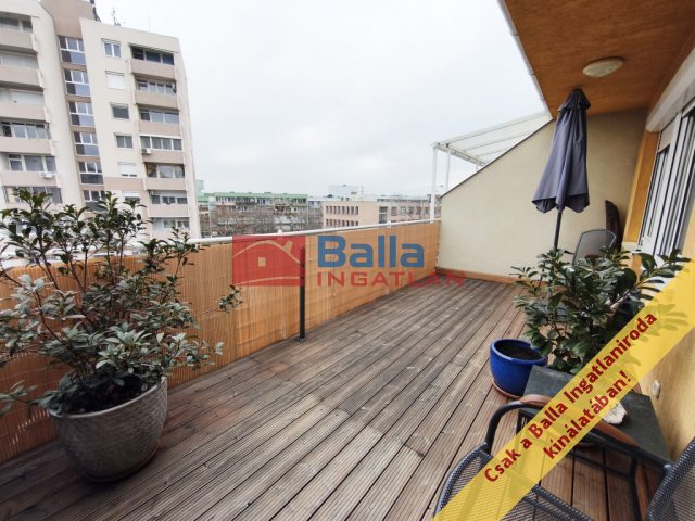 Egyéb tulajdonságok: tehermentes, akadálymentes, lift (1 db), külön wc, gardróbszoba, terasz (26 m²), utcai parkolás