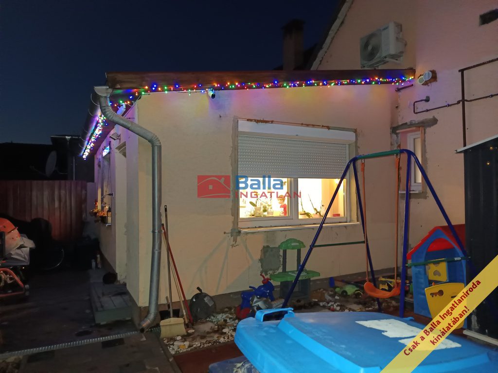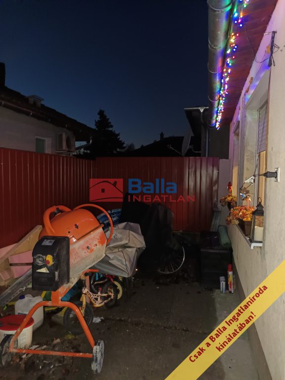 A házrész és a magasan lekerített saját kertrész osztatlan közös tulajdonú telken fekszik, azonban mivel saroktelek, a bejáratuk két külön utcában van, tehát nincs szó közös élettérről. Van használati megosztási szerződés, és külön mérőórák, az ingatlan így bármilyen hitelre alkalmas. A telekrész 129 m2. Kétszárnyú kapu teszi lehetővé akár az udvarra beállást, de mivel jó környéken van az ingatlan, közvetlen a ház előtti parkolás is biztonságos. Az udvaron álló mobil tárolót (ami kb 3 m2 és szintén új) a tulajdonos ott hagyja, az ár tartalmazza. A telek viacolorral való burkolása is elkezdődött, de még nincs befejezve. Ugyan így a ház külső szigetelése és vakolása, színezése.