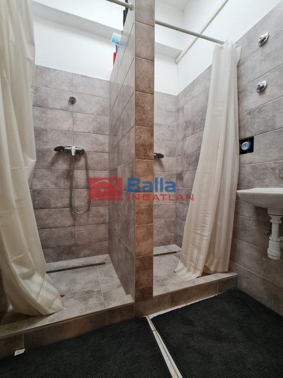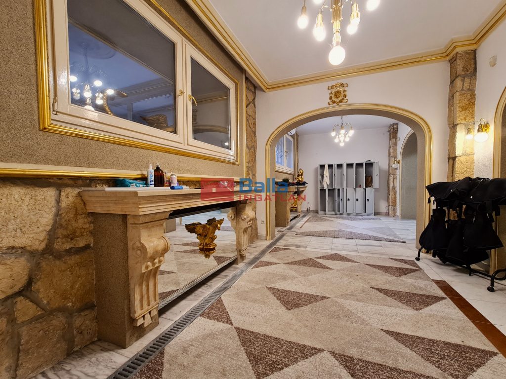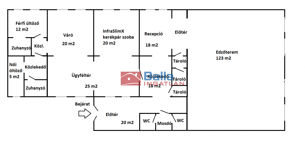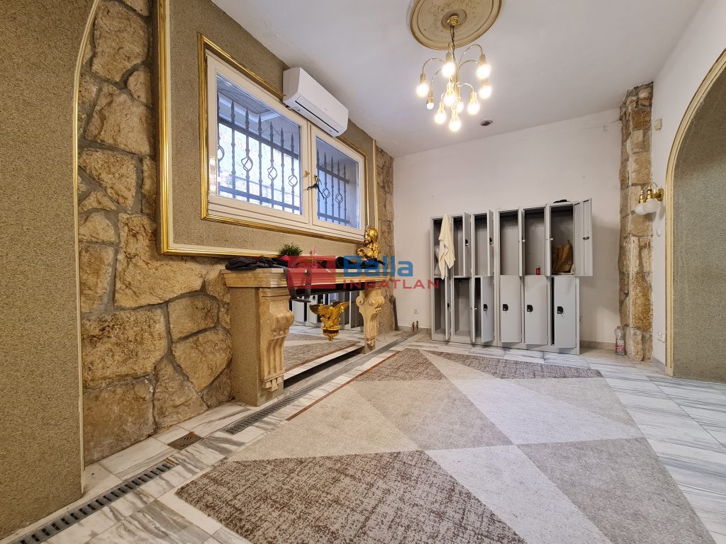 Az alagsori ingatlanban nem csak az edzőterem található, hanem a hozzá szükséges kiszolgáló helyiségek is, mint például a recepció pulttal, az ügyfél-várakozó fotelekkel, kanapéval,