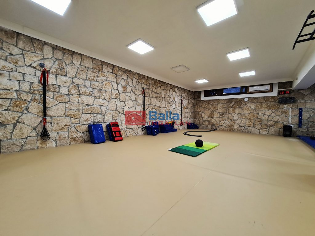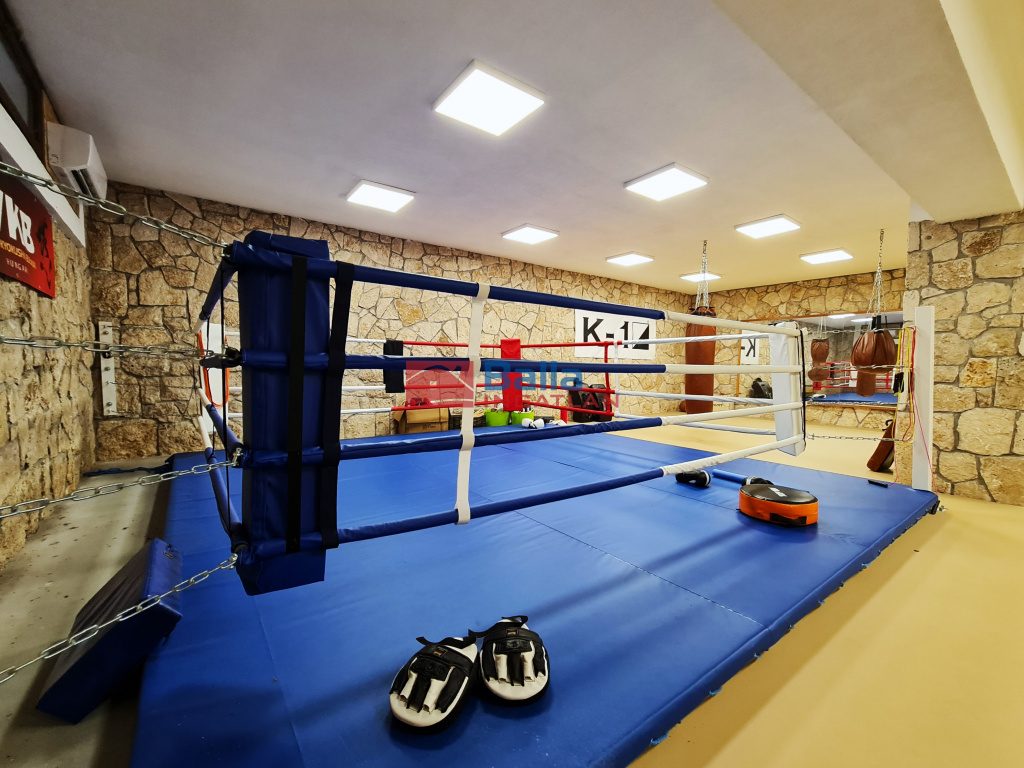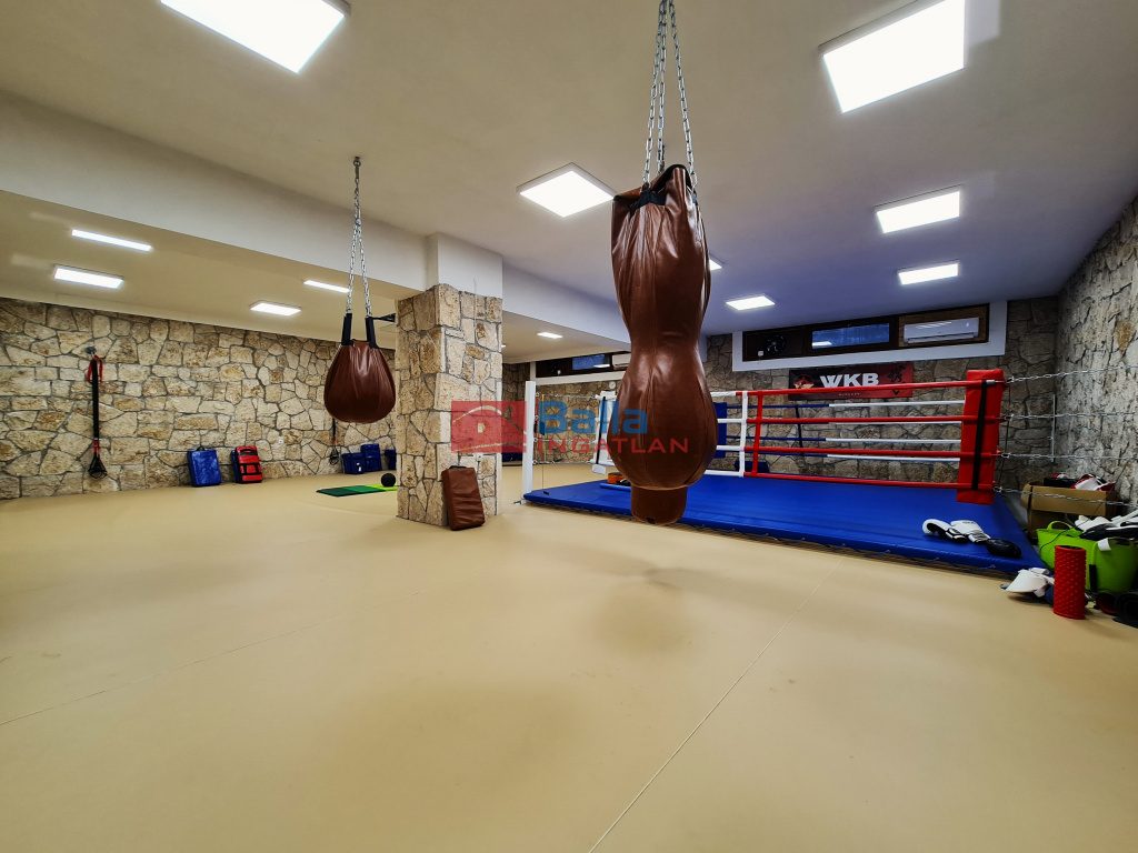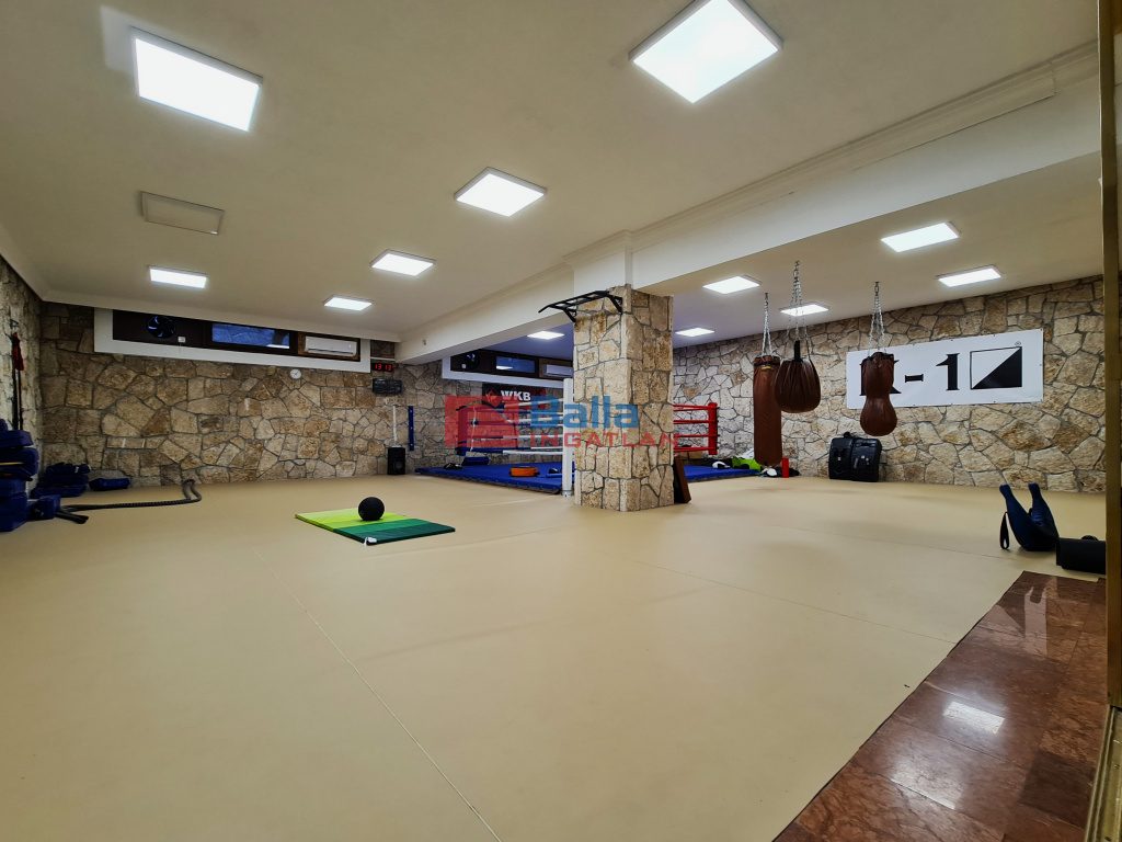 A teljesen és igényesen felszerelt edzőtere és a hozzá tartozó kiegészítő helyiségekkel. összesen 300 m2-es. Maga az 123 m2-es edzőterem teljes felülete sportpadlóval van borítva amely ideális küzdősportok gyakorlásához is.