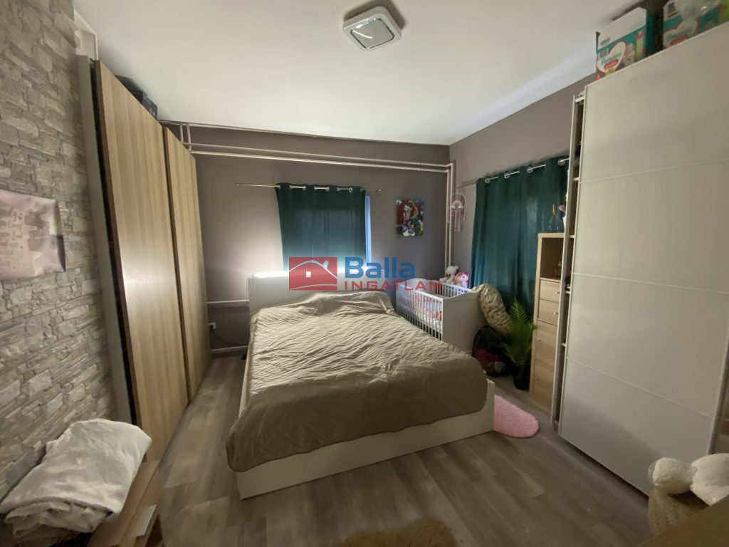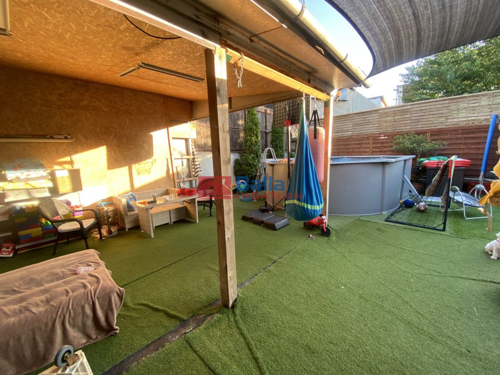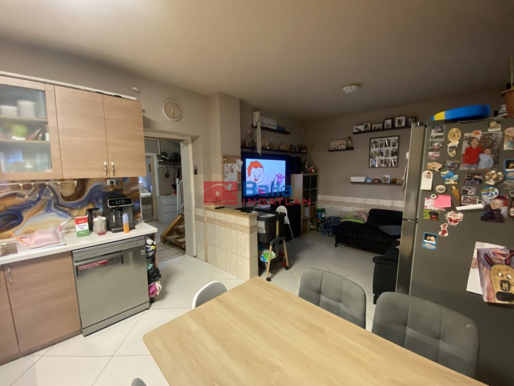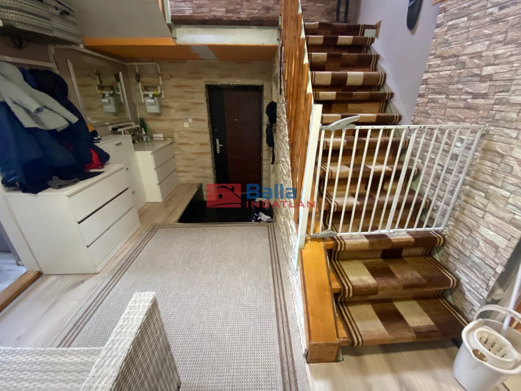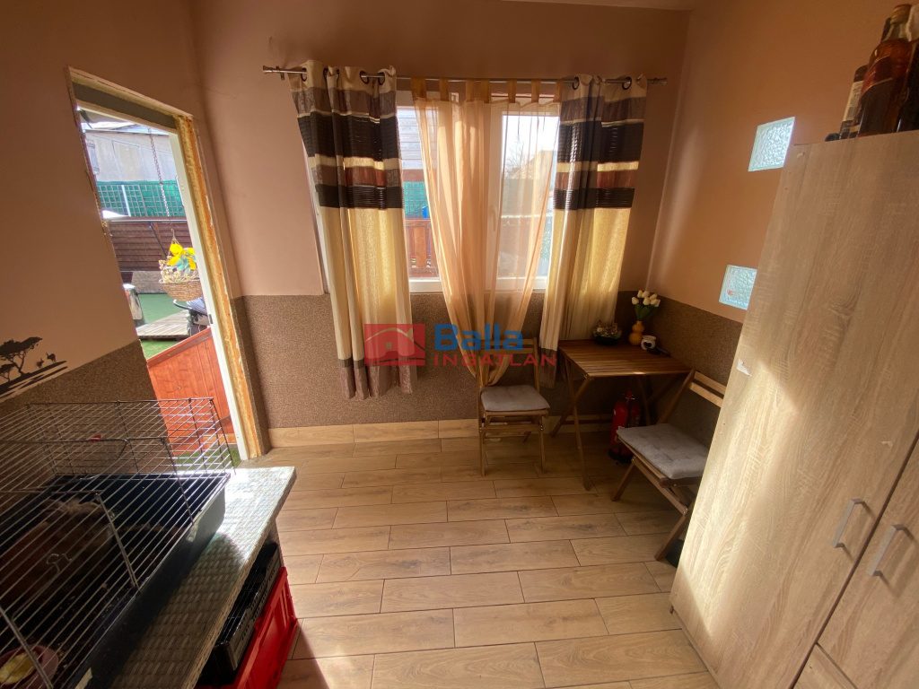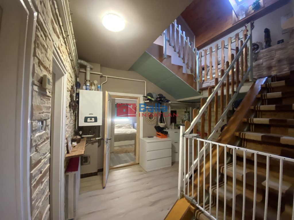 - 2 szoba, előszoba+belső lépcső, konyha+étkező+házkapcsolatos beépített terasz, fürdőszoba, külön WC, lépcső alatti zárt tároló,