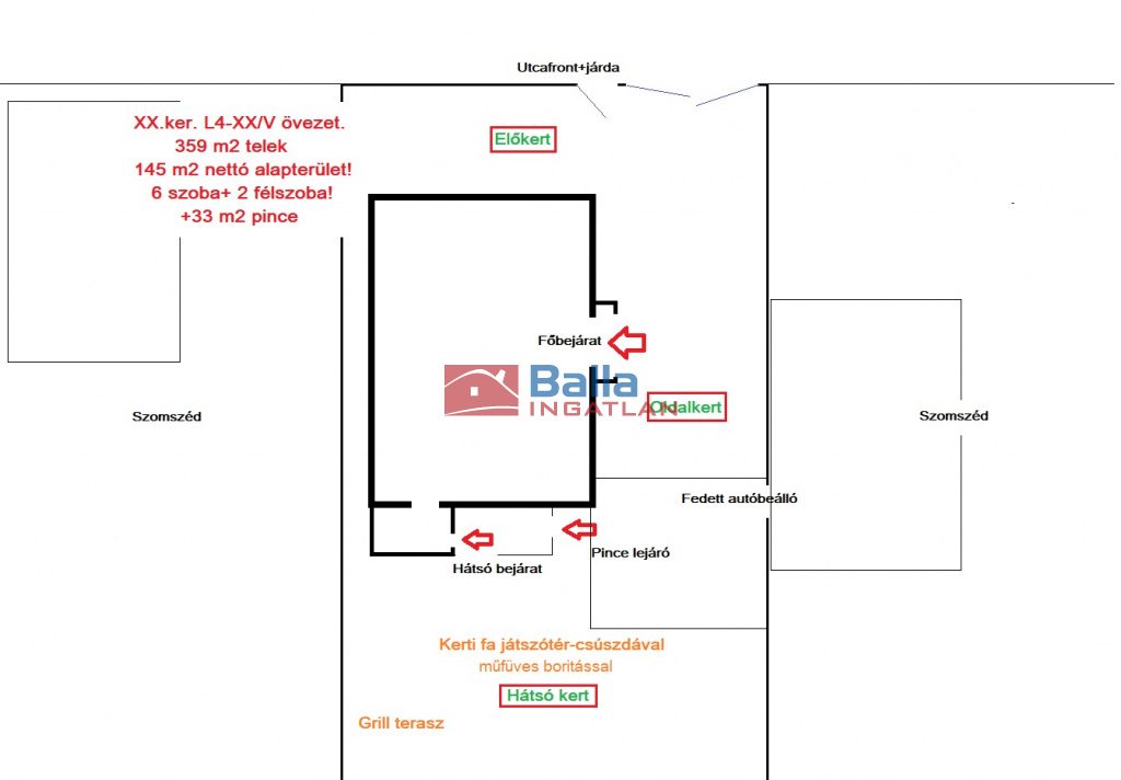 145 m2 nettó alapterület, 8 SZOBÁS (6+2 félszoba).